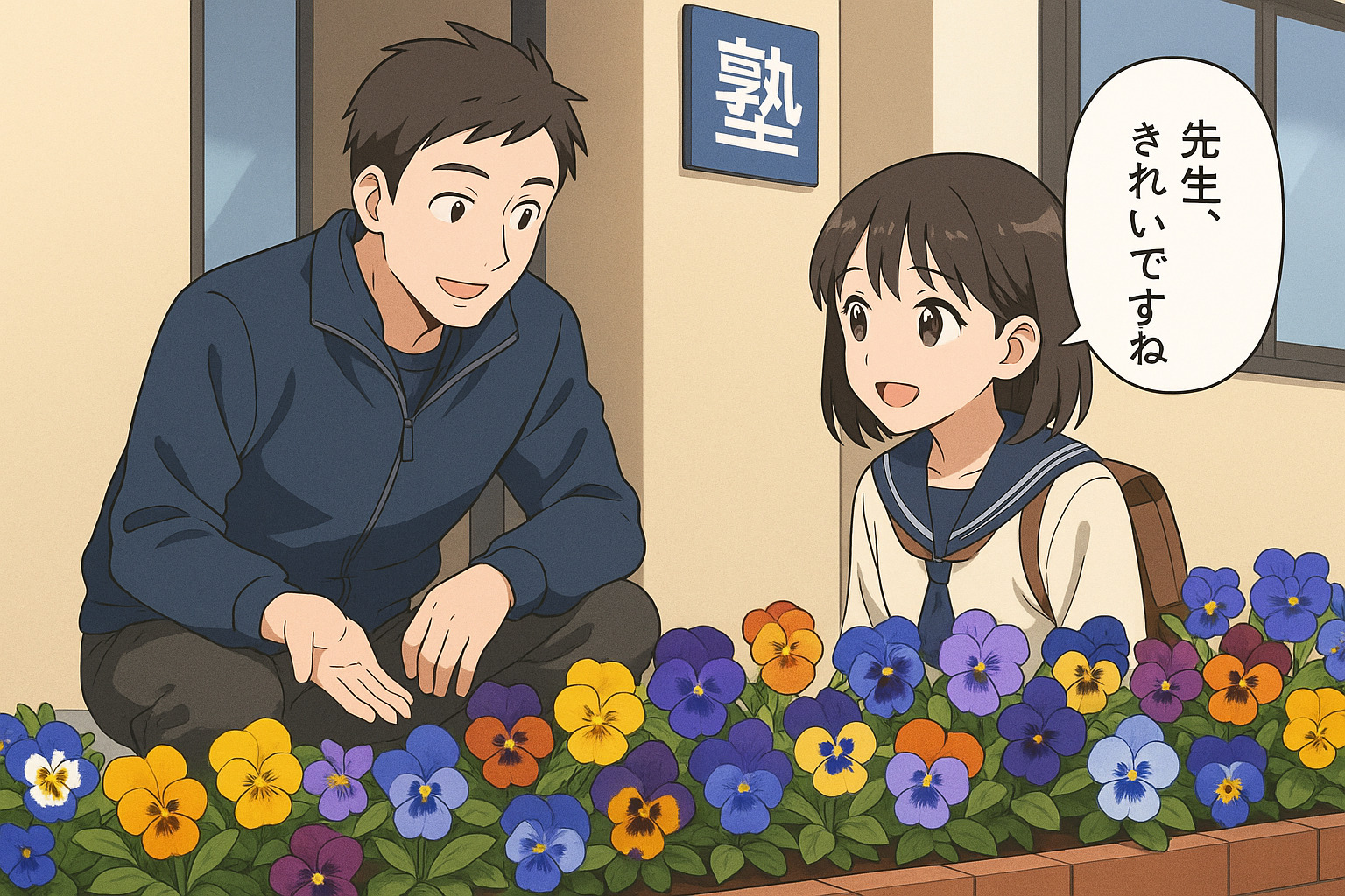 これから半年ほど、塾の前を明るくしてくれるパートナー。